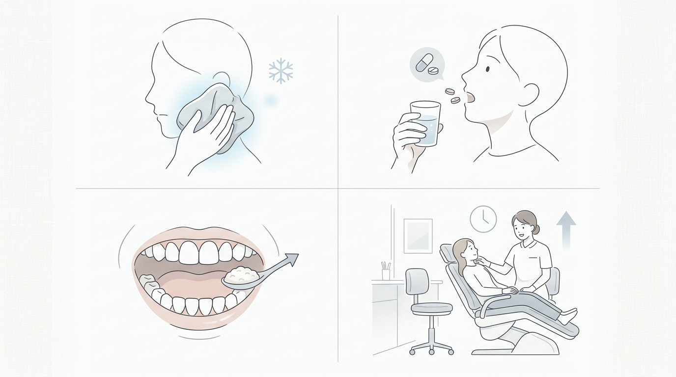 特に、激しい痛み、腫れ、発熱がある場合はすぐに受診してください。 夜間や休日で痛みが我慢できない場合は、夜間救急歯科への受診も検討しましょう。