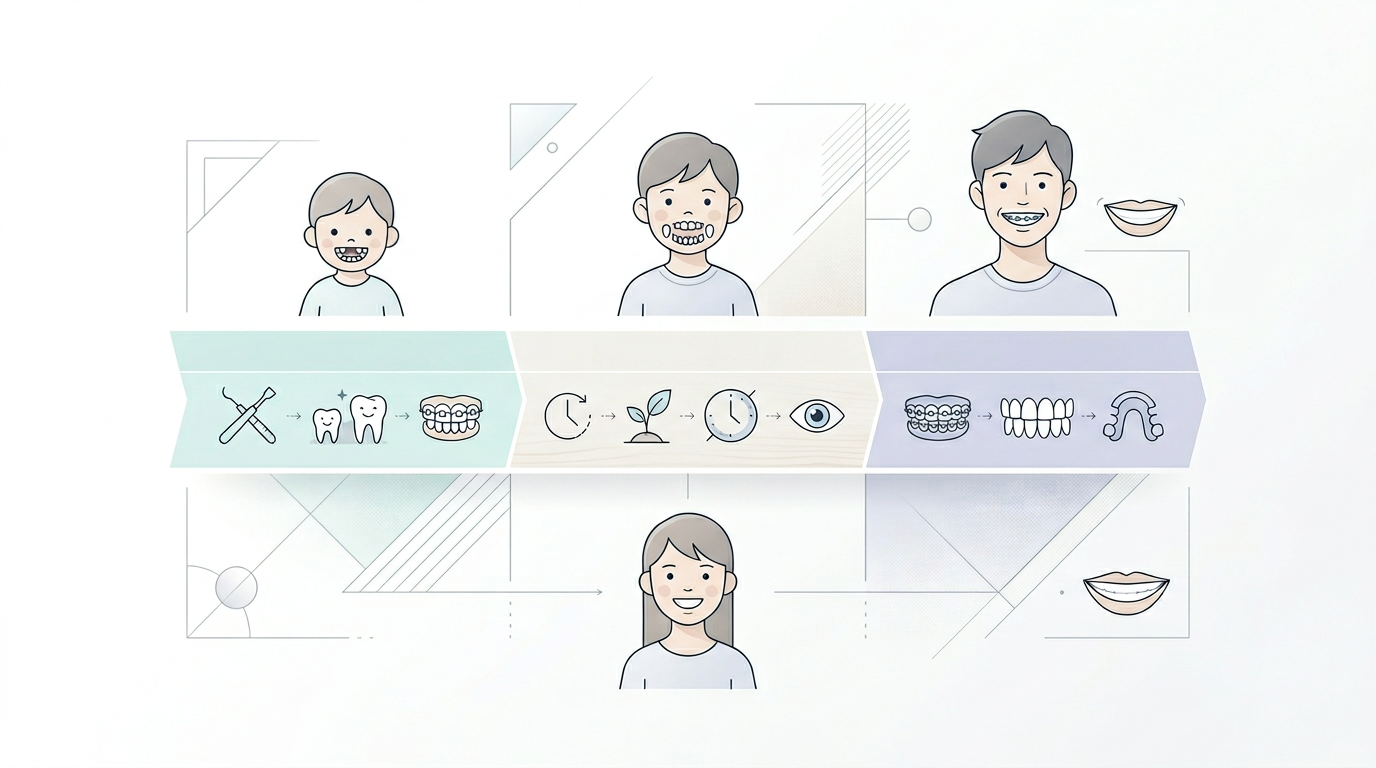 早期に治療を開始することで、より短期間で効果的な治療が可能です。3〜7歳で開始した場合、6〜12ヶ月で完了できるケースも多くあります。