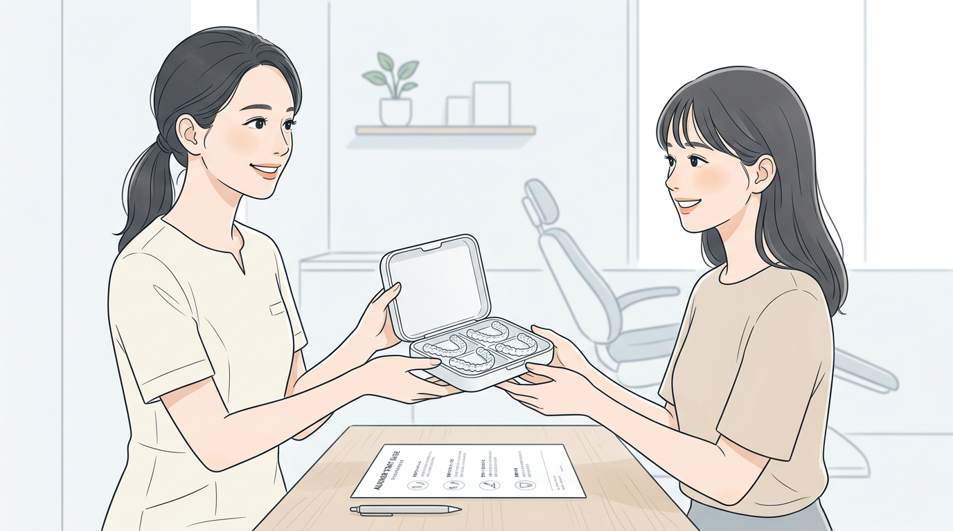 オーダーメイドのマウスピースが完成したら、装着方法や取り扱い方法をご説明し、治療スタートです。